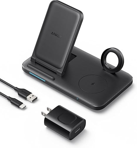 • Convenient All-in-One Solution: Charge your phone, earbuds, and smartwatch simultaneously.