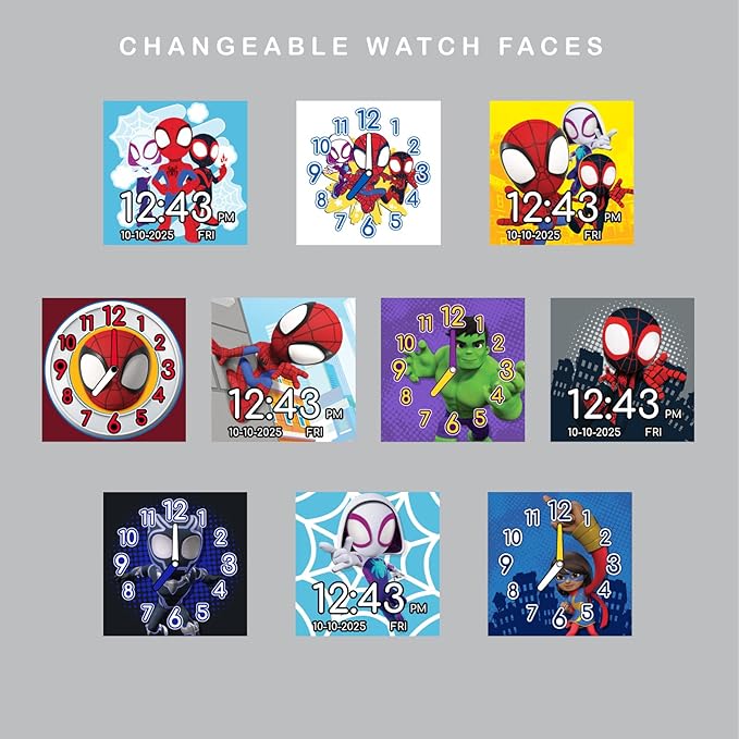 The Accutime Marvel Spidey Smart Watch is more than just a watch; it’s a gateway to the world of Marvel and an introduction to smart technology. By featuring Spidey and his amazing friends, this smartwatch allows children to immerse themselves in the exciting world of superheroes. Whether they are playing games, taking photos, or learning to tell time, children will feel like they are part of their favorite superhero team, making every moment with the watch an adventure. This connection to familiar and beloved characters enhances the learning experience, making it more engaging and enjoyable for young children.