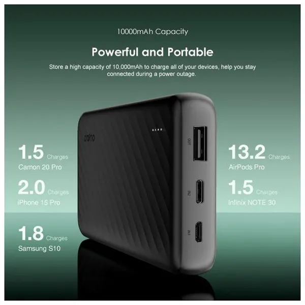 • Model:Oraimo Slice Link 10000mAh 12W Fast Charge 3-in-1 Portable Power Bank
