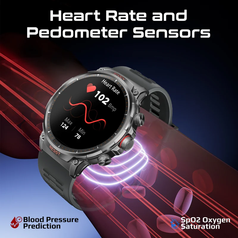 SPO2 and Blood Pressure Monitoring: The SPO2 (blood oxygen) tracker helps you monitor your oxygen levels, a key indicator of your overall health, especially when engaging in intense physical activity or at higher altitudes. The blood pressure monitor ensures that you can keep track of your blood pressure levels, helping you stay proactive about your health.